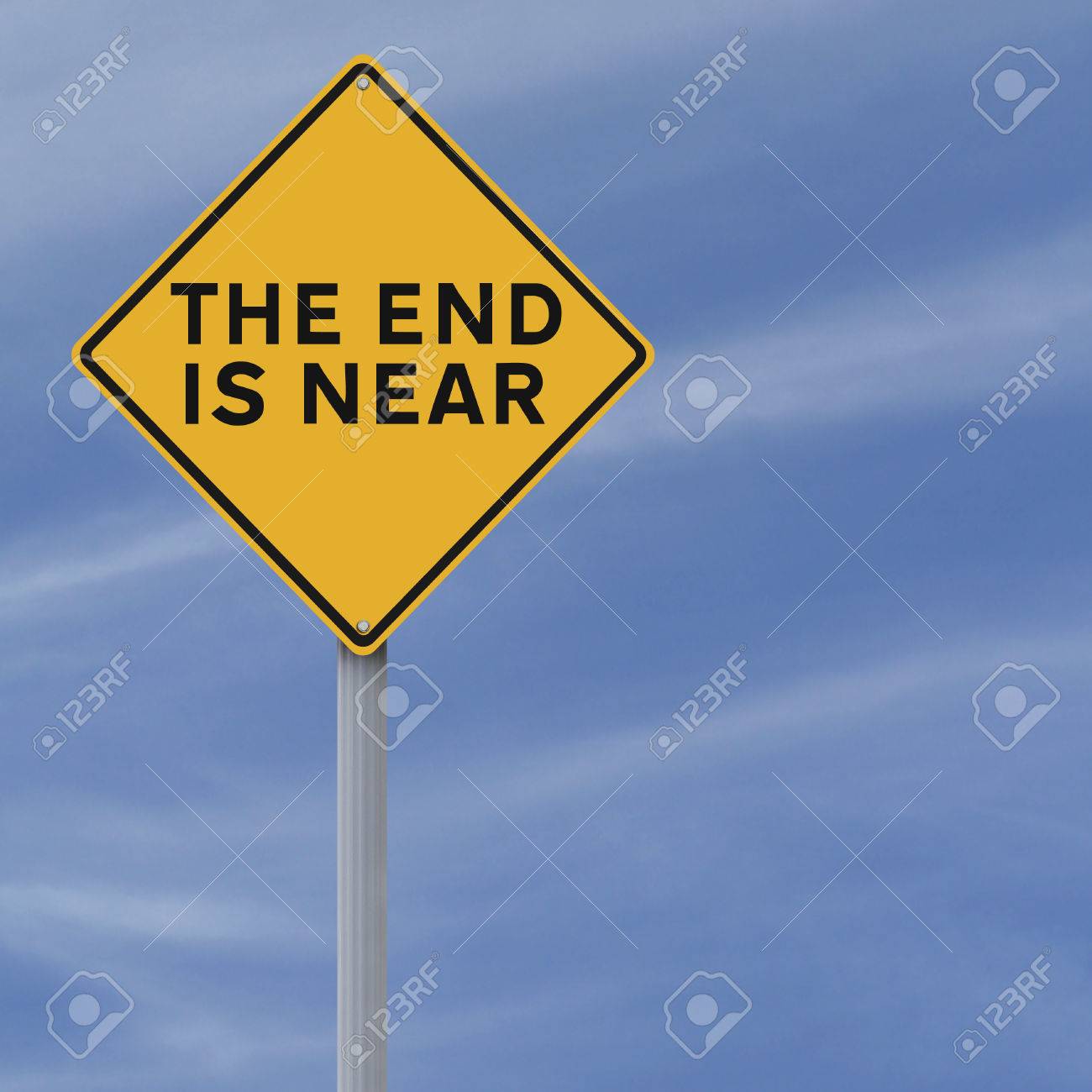 Today consider twelve of the signs. Web Conceptual road sign indicating The End is Near Yellow the end is near warning sign isolated on white background Giraffe and Zebra at a park Earth with background of fire. Web Two priests are standing by the side of the road holding up a sign that reads The End is Near.